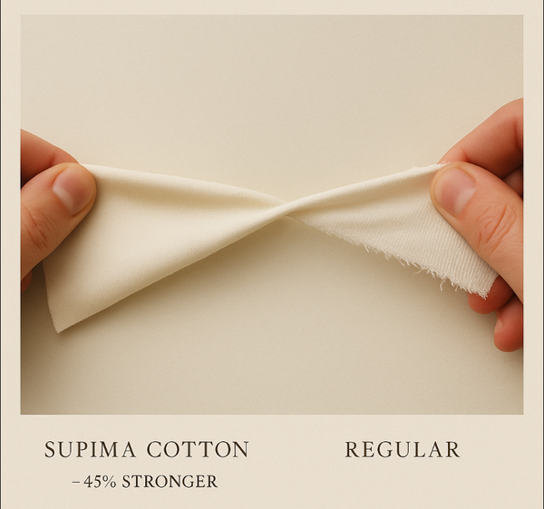 Supima fibers measure 1.5 inches vs. the 1.1 inches of regular cotton. Those extra millimeters may sound small, but they create yarn that's silkier, more durable, and resistant to fraying.